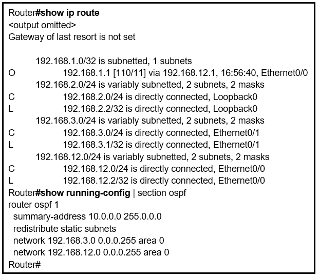 - D. The summary route is not visible on this router, but it is visible on other OSPF routers in the same area.