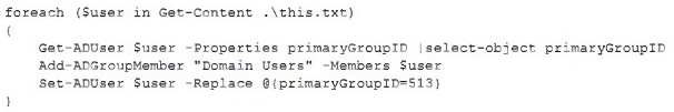 - C. Python: While Python can interact with Active Directory using libraries, the syntax presented in the script is not Pythonic. Python also does not use the Verb-Noun cmdlet structure.