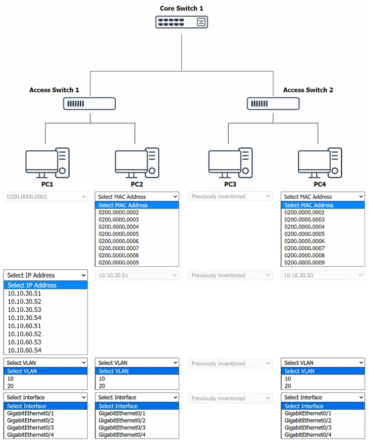 - Mapping Devices to Ports: By executing these commands on each switch, you can trace which PC is connected to which port. For example, if the show mac address-table command on Switch A shows that MAC address X is connected to port Gi1/0/1, and the show arp command shows that MAC address X is associated with IP address 192.168.1.10, then you know that PC with IP 192.168.1.10 is connected to Switch A, port Gi1/0/1.