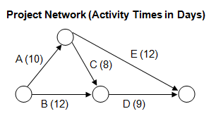 The figure below shows the network diagram for the activities of a large project. What is the shortest number of days in which the project can be completed?