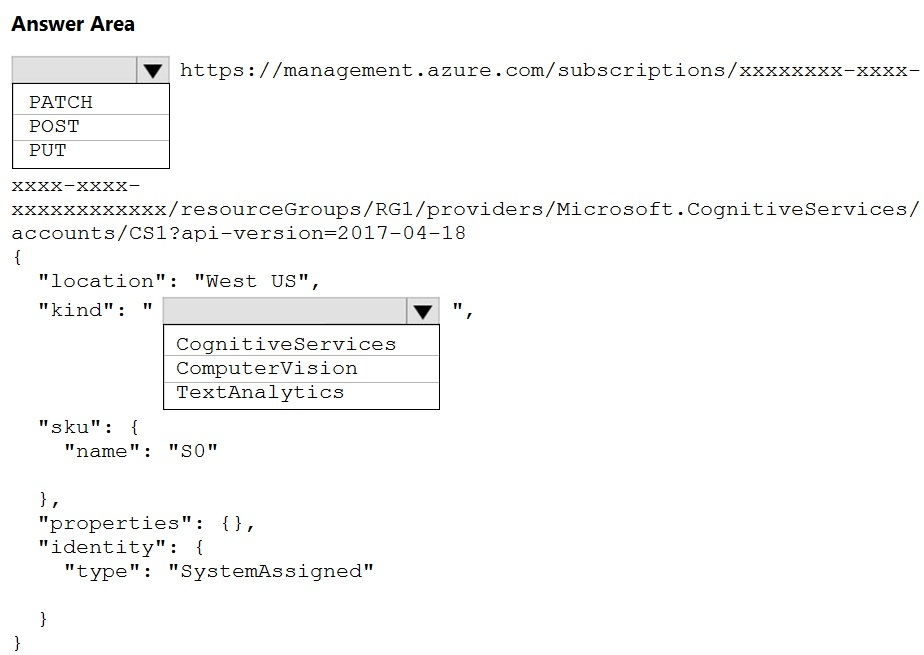 How should you complete the HTTP request to create the new resource? To answer, select the appropriate options in the answer area.