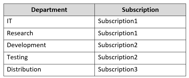 The departments at the company use the Azure subscriptions as shown in the following table.