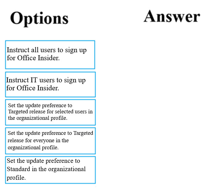 Which of the following options meet the requirement? Answer by dragging the correct option/s from the list to the answer area.