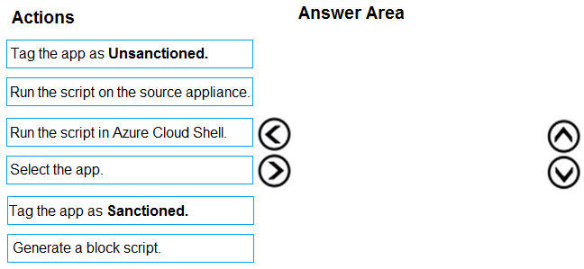 The suggested answer is based on the fact that without Microsoft Defender for Endpoint, blocking must be done manually via a block script run on the source appliance (firewall or proxy) that initially detected the app. This is because Cloud App Security identifies risky apps through log data collected from these appliances.