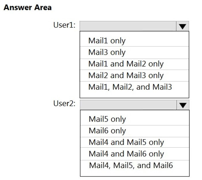 In summary: User 1: Mail 3 only. User 2: Mail 6 only.