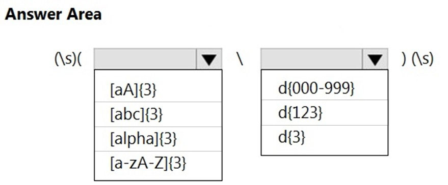 How should you configure the regular expression to detect the content? To answer, select the appropriate options in the answer area.