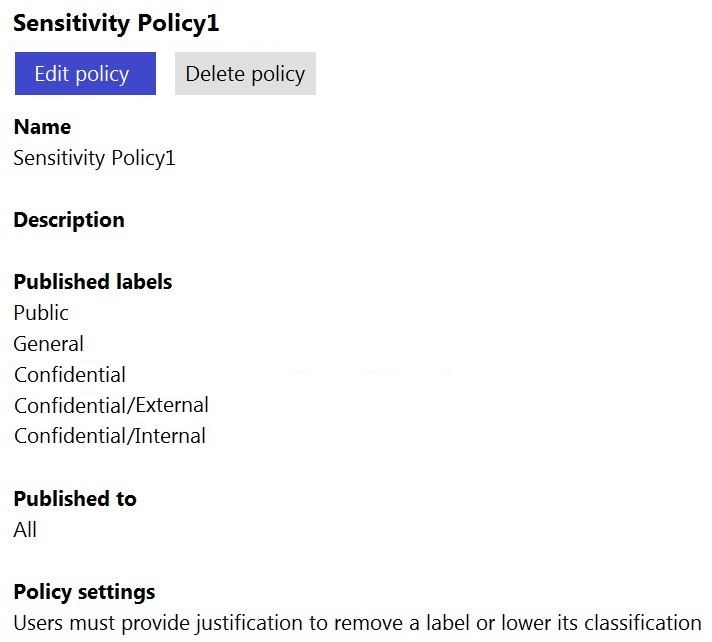 Why other answers are incorrect: Creating multiple sensitivity labels would be redundant, as the same actions need to be applied regardless of the country of origin of the passport number. Using more than one auto-labeling policy is also unnecessary, as a single policy can include multiple sensitive information types in its conditions. This contradicts the requirement to use the minimum number of sensitivity labels and auto-labeling policies.