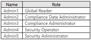 Contoso has a Microsoft 365 E5 tenant. The tenant contains the administrative user accounts shown in the following table.