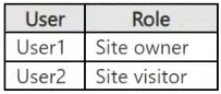 Two users named User1 and User2 are assigned roles for Site2 as shown in the following table.
