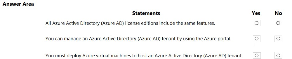 For each of the following statements, select Yes if the statement is true. Otherwise, select No.