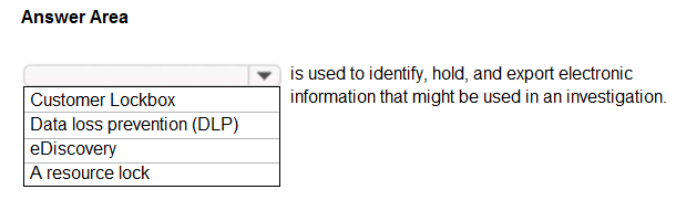 - A resource lock: Resource locks are used in Azure to prevent accidental deletion or modification of Azure resources. This has no relation to eDiscovery.